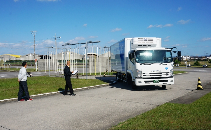 当社専用の研修プログラムを組んでいただき、トラックを持ち込み実践形式の研修を行っています。コース内での運転練習や路上教習や座学にて、運転技術のアップや安全運転に対する意識の向上を図っています。